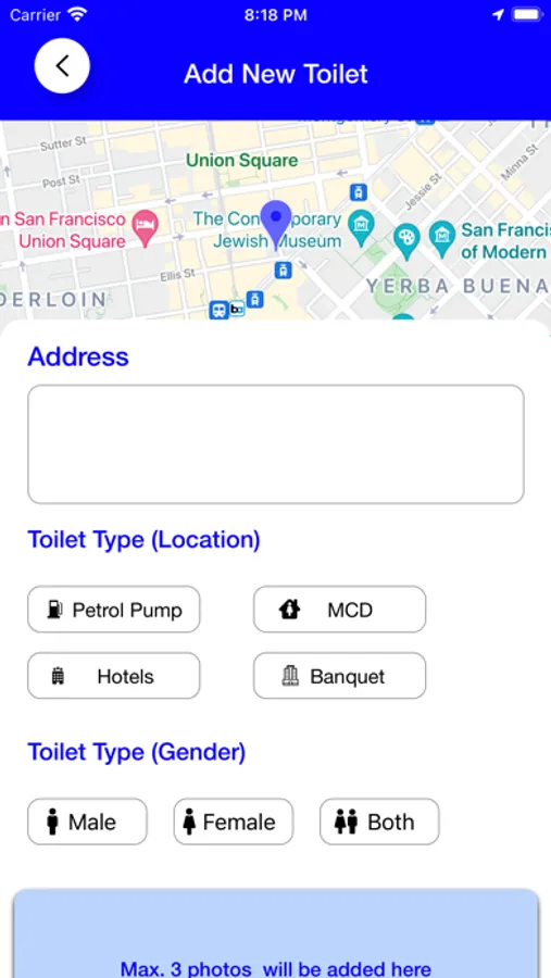Toilet App is available in 2 languages - English & Hindi and has been further tagged as Gender-specific for ease of use. This Toilet App is one of its kind in the Country and its use will help the locality to remain clean and hygienic. Users can easily submit their feedback by uploading pictures of the Toilets and also with relevant comments.