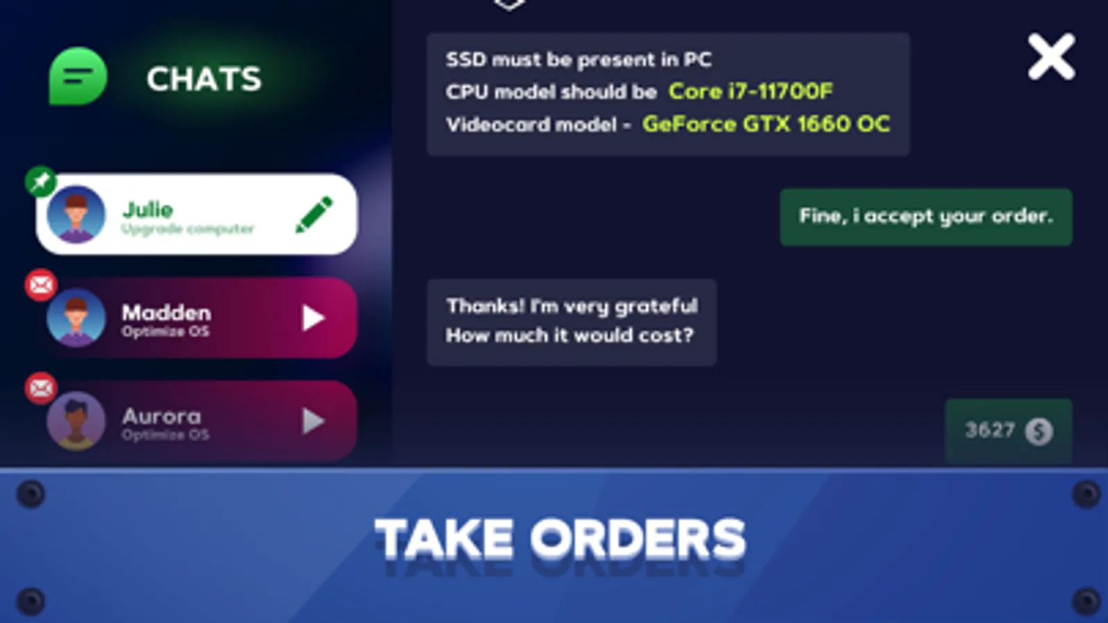 During the game, you need to complete your service center’s clients’ commissions. For completed tasks, you will receive experience and money. With each new task, you will move step-by-step to purchasing modern equipment, office, and upgrading your service center.