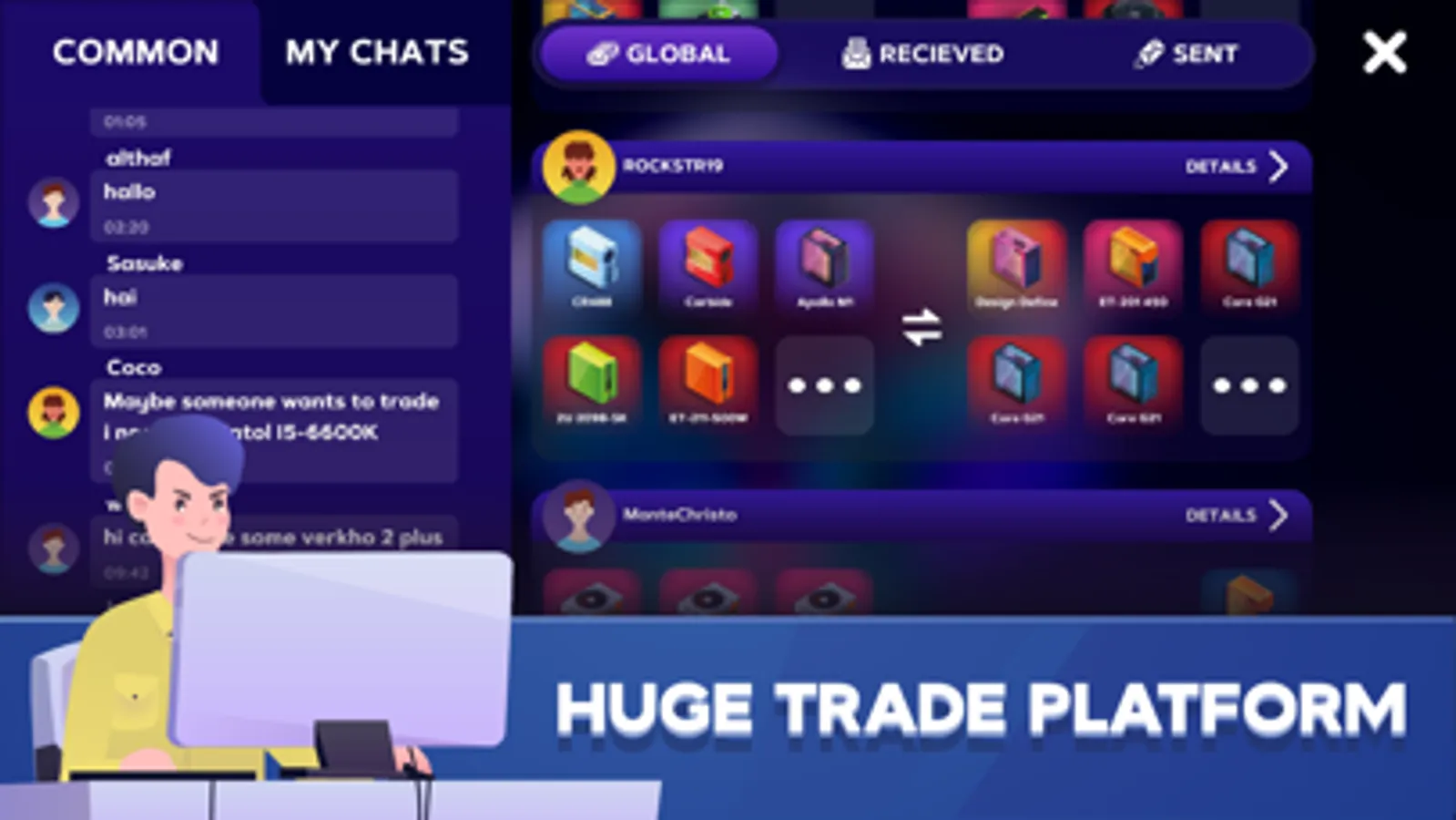 - Huge trade platform! Now you can trade your PC parts with other players around the world