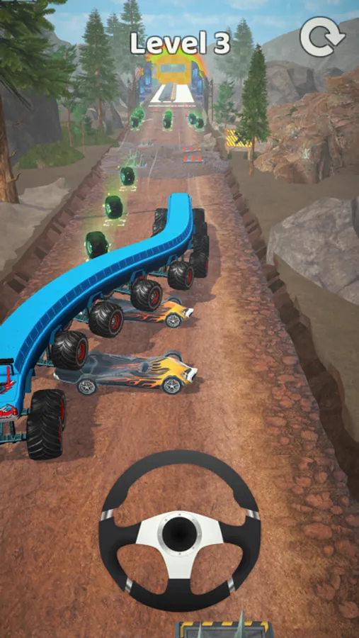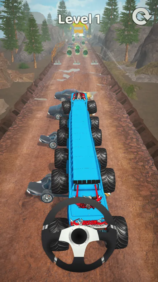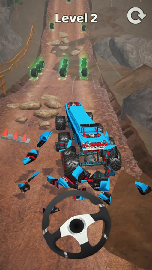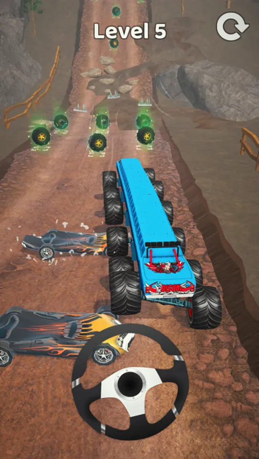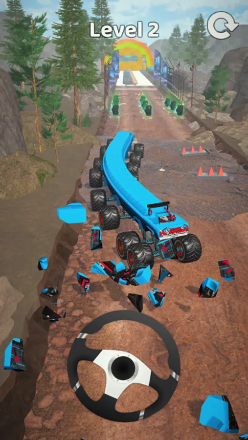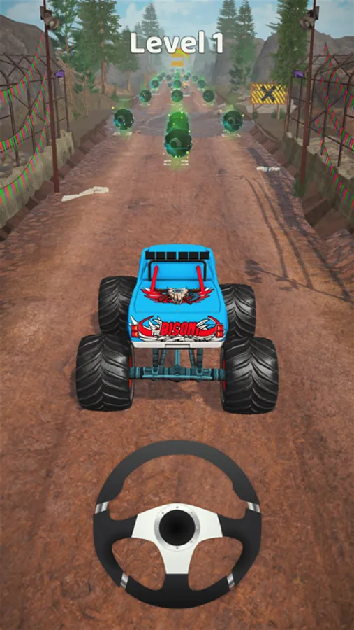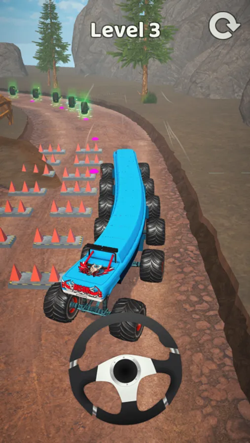 Realistic steering and physics, collect as many tires to make the longest monster truck