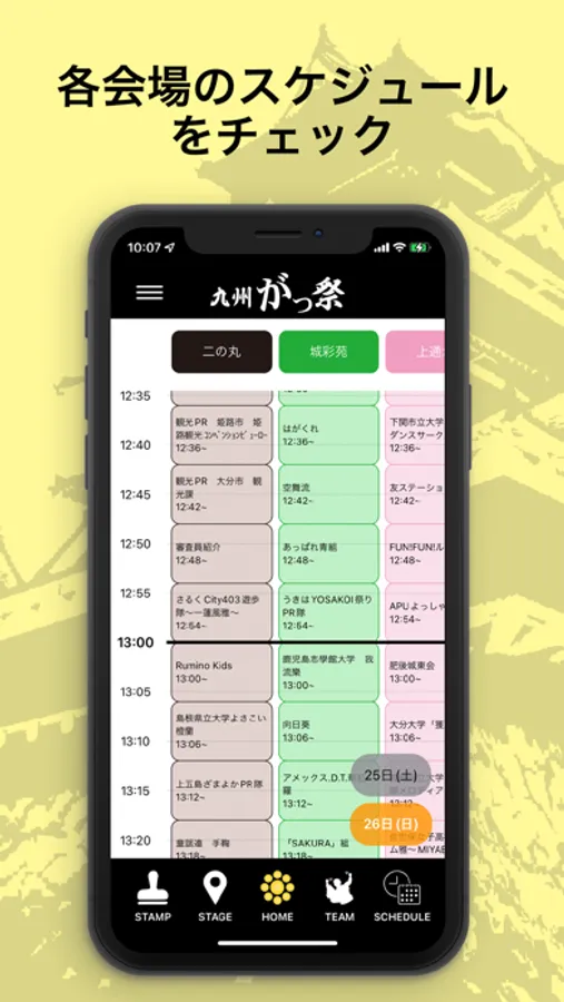 - 開催日の各会場のタイムスケジュールがスマホで簡単に確認できます。