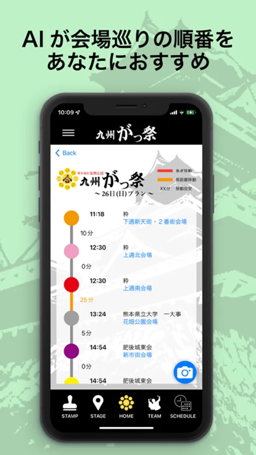 - 観たいチームを選択することでAIが自動で会場巡りのルートをおすすめします!