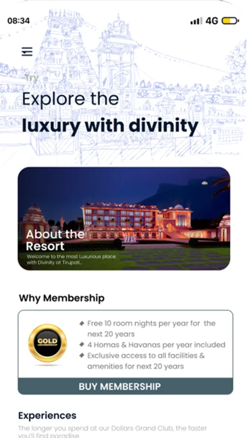 With a firm resolve to relieve any external deterrents to the fervent devotees of the Lord during their yatra to Tirupati, we have conceptualized Dollar's Divine Club – Devotion with Luxury as an Ashrams to provide a purely daivik atmosphere amidst the lap of nature with a singular emphasis on the traditional Indian philosophy of "Pancha Bhoota", the five elements - Bhumi, Jal, Agni, Vayu, and Akash.