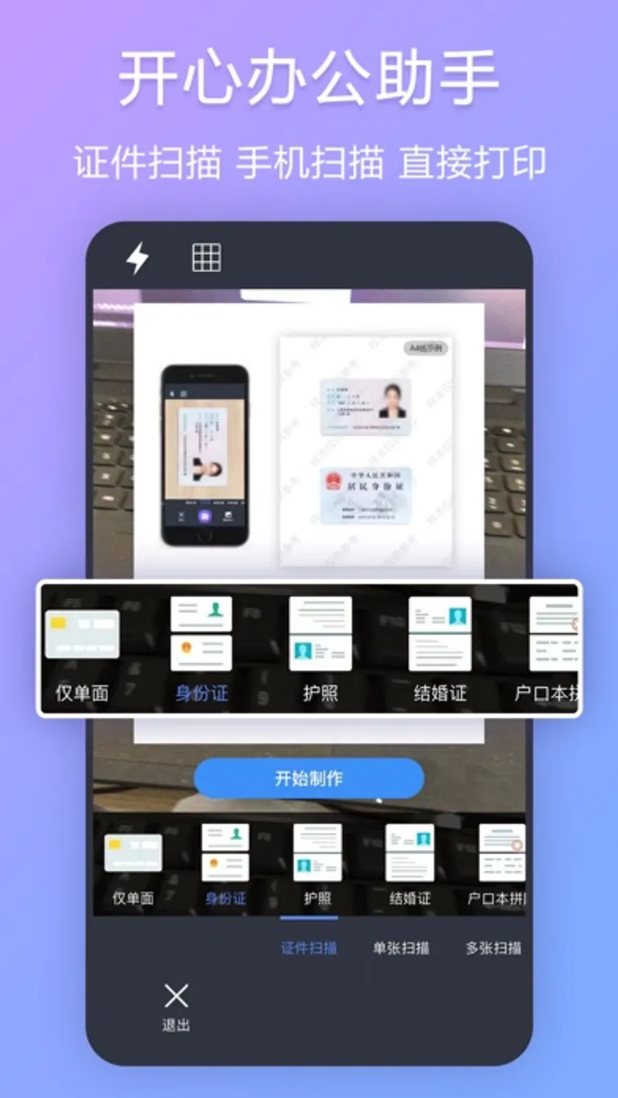 提供证件扫描服务,可通过手机制作证件扫描件,可直接打印复印件。支持身份证、银行卡、户口本、驾驶证、护照等等。