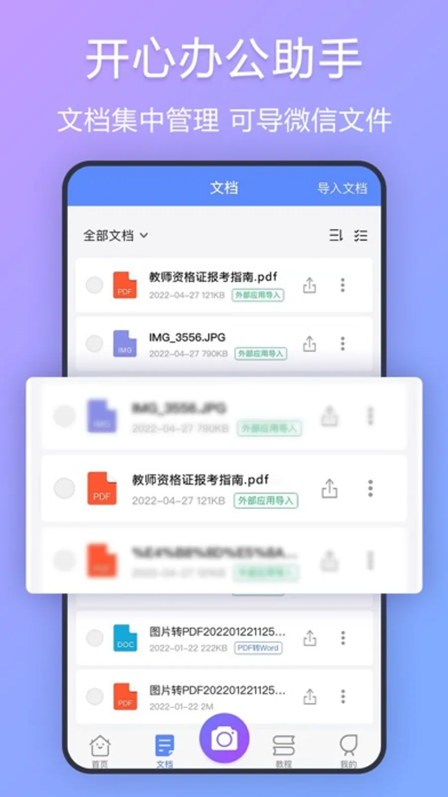 【文档中心】支持外部应用导入文件,支持分类管理;