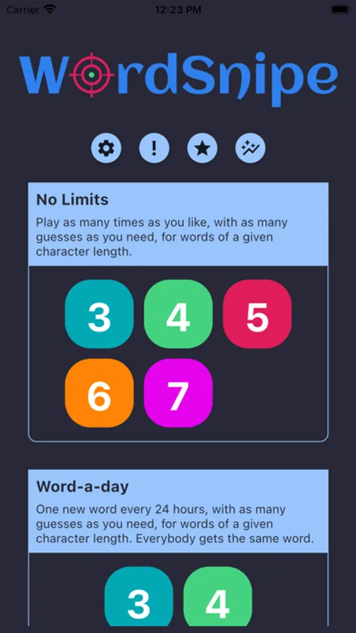 * A No Limits gameplay mode where you can play as much as you want, make as many guesses as it takes to find the word, and be able to pick words from 3 characters to 7 characters in length — basically, play to your heart's content.