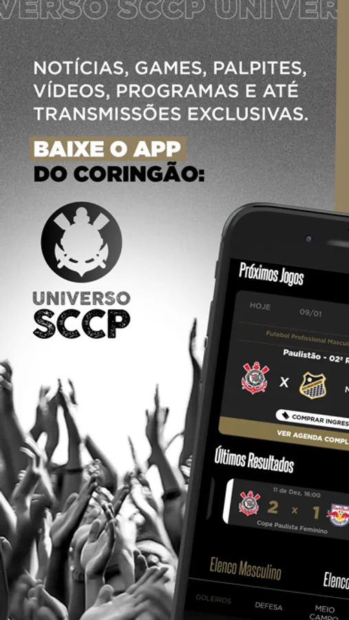 Que tal encontrar tudo sobre o Corinthians em um único app? Notícias, jogos, produtos oficiais, área de palpites, vídeos, programas e até transmissões exclusivas... Tudo que tem a ver com o Coringão está no Universo SCCP.