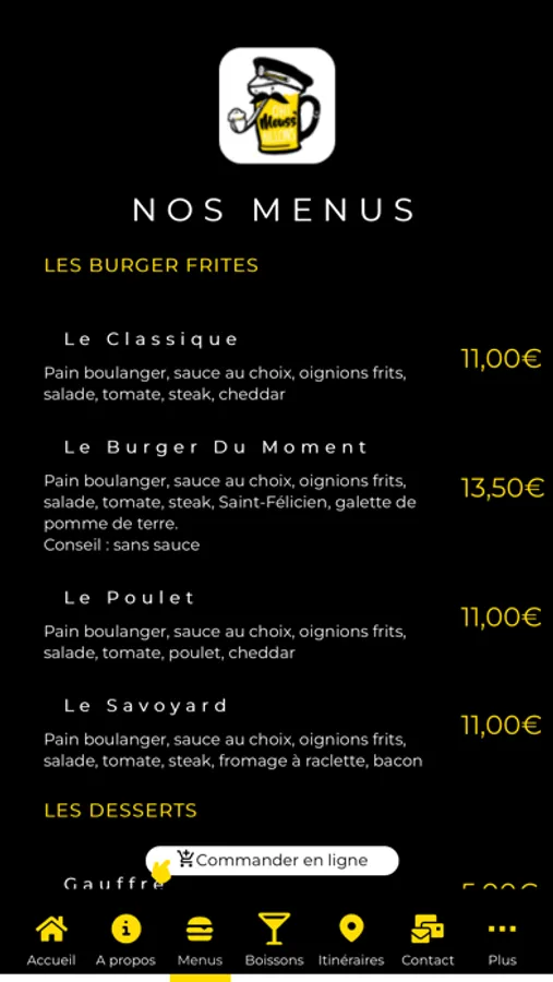 - Visionnez les informations de l’établissement (horaire, adresse, menu, galerie photos, avis client…)