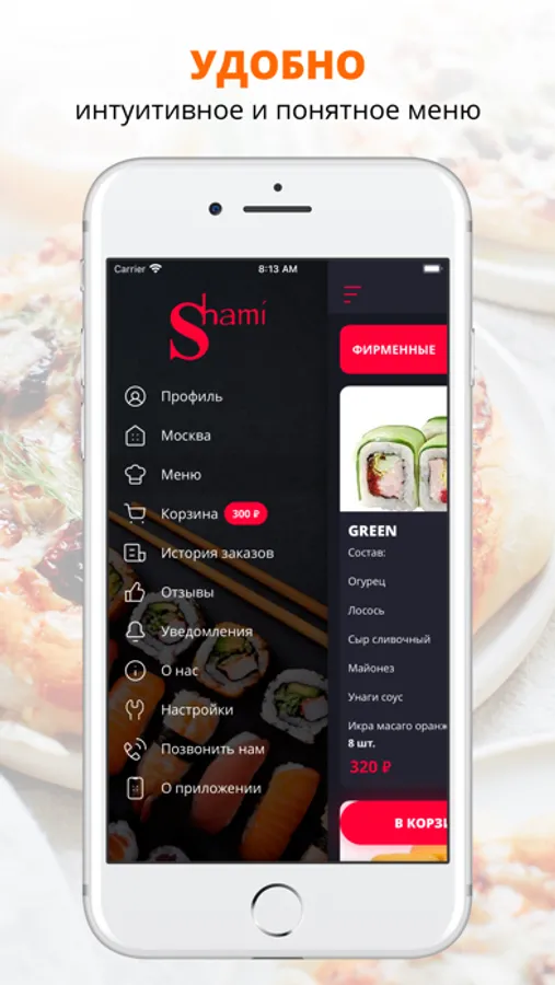 Приложение Shami Суши — это удобный способ заказа еды домой или в офис!