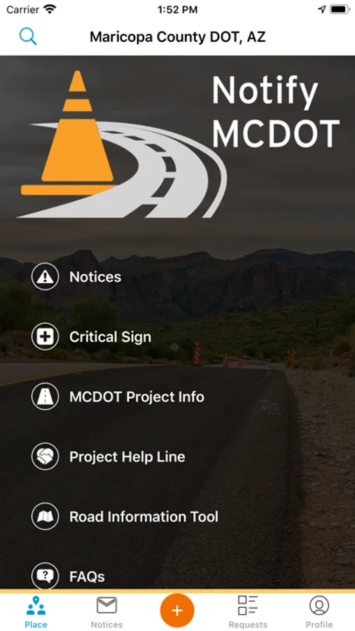 At MCDOT, we provide connections that improve people’s lives. With the Notify MCDOT app, those connections are even stronger. From reporting potholes and damaged street signs to requesting information about current projects, the easy to use Notify MCDOT app is your connection to us. Using GPS to recognize your location, a menu helps guide you to report common types of service and/or to request information. Customers are able to upload pictures or videos to accompany the request and track the status of submitted reports. You can also visit us at mcdot.maricopa.gov.