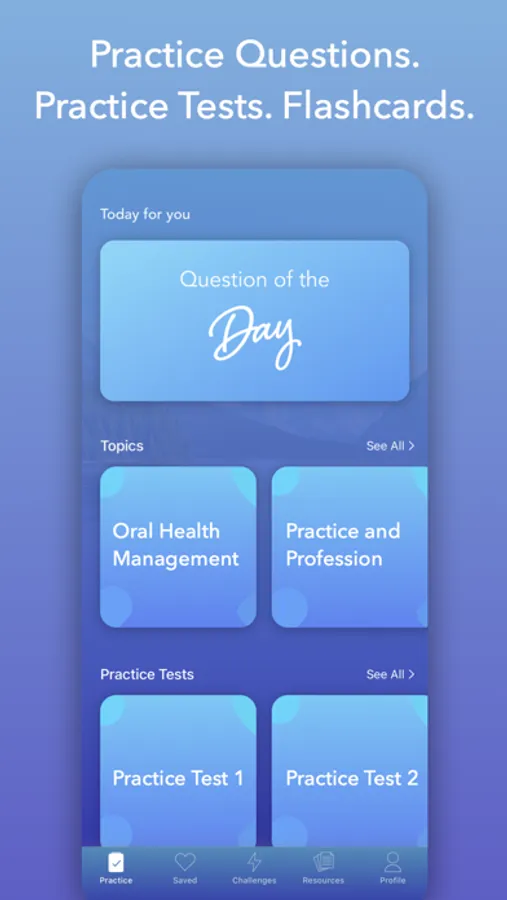 Swipe the cards to quickly review INBDE concepts without the need to go through the whole test, complete the right amount of questions for you, and get some quick studying in.