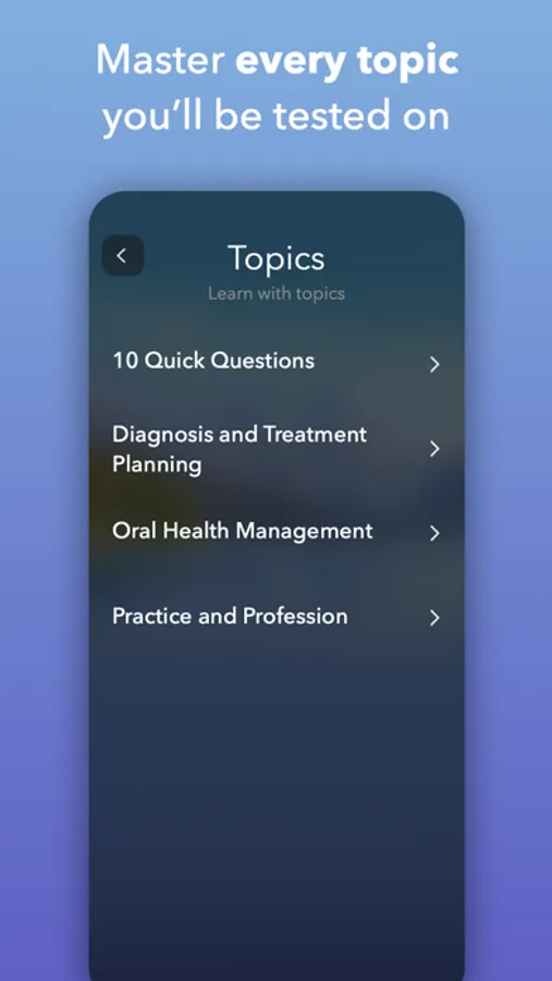 You will see why this app is referred to as "The INBDE Bible" - It's so comprehensive! It will teach you everything you need to pass your exam.
