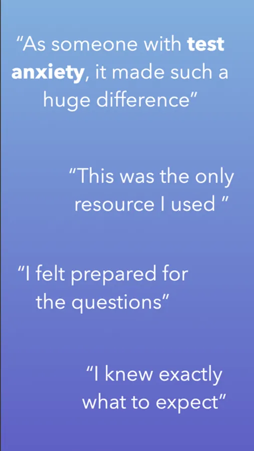 Zen Prep is the #1 app for passing your exam, WITHOUT stress and anxiety. You will experience better exam practice, lower stress, and less anxiety with our step-by-step training, exam simulators, motivation programs, exam resources, and tips and tricks. Zen Prep is recommended by top teachers and mental health experts.