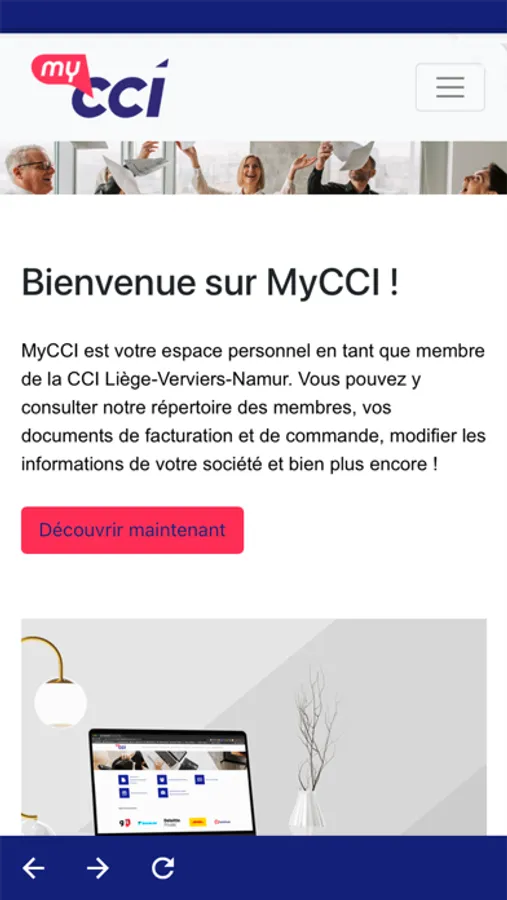 MyCCI est votre espace personnel en tant que membre de la CCI Liège-Verviers-Namur. Vous pouvez y consulter notre répertoire des membres, vos documents de facturation et de commande, modifier les informations de votre société et bien plus encore !