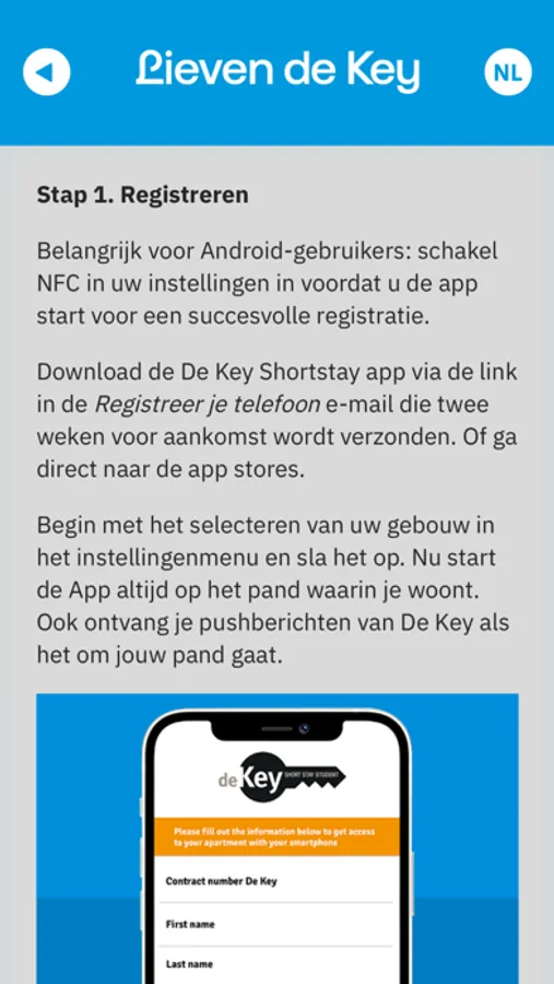This app provides access to all maintenance areas for the contract partners from Lieven de Key. After installation and registration, the phone will function as a digital key. Access is provided only for the contract period and necessary areas.