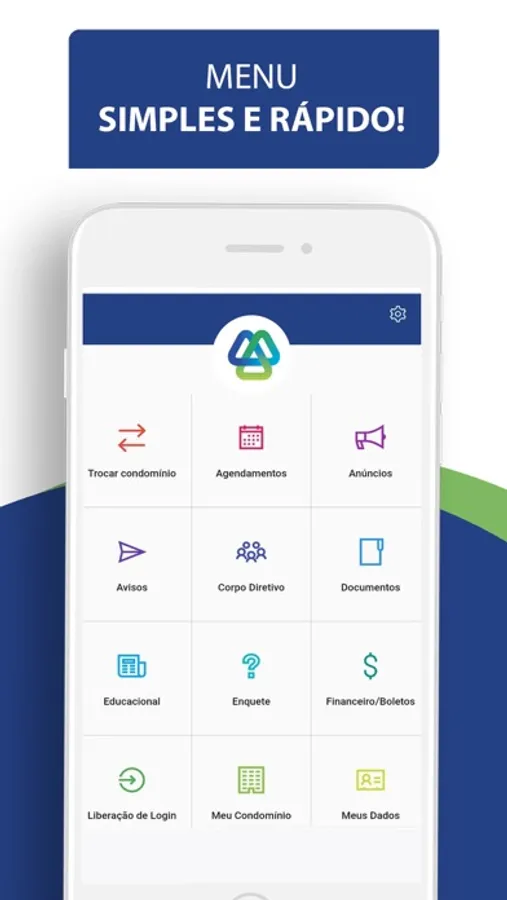 Após o download e instalação no seu smartphone, faça a conexão utilizando seus dados de Login e Senha do portal do seu condomínio (consulte sua administração caso tenha necessidade) e navegue pelo menu principal através dos recursos disponíveis.
