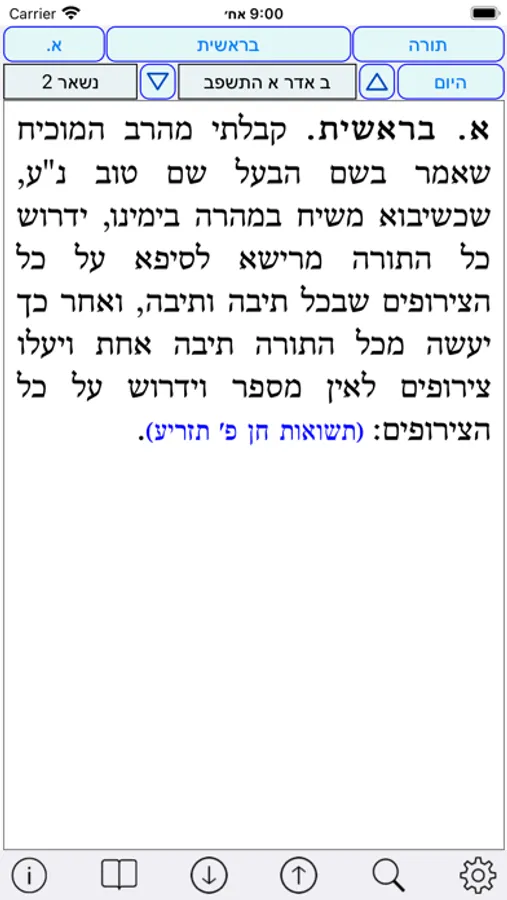 Rabi Israel Baal Shem Tov with search option, bookmarks, and learning program.