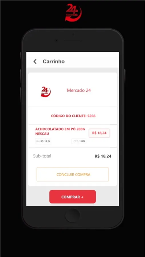 Com o aplicativo do Mercado 24 vai ser muito mais fácil fazer compras sem sair do seu condomínio. Basta apontar a câmera do seu celular para o código de barras do produto desejado, confirmar o seu carrinho virtual e fazer o pagamento pelo próprio aplicativo. Você pode comprar na loja, no modelo scan&go, ou seja, bipar e levar na hora, sem ter que ficar em filas; ou, ainda, comprar direto de casa, bipando os produtos da sua dispensa ou geladeira que deseja recomprar com a gente e busca-lo em seguida. Viva a melhor experiência de compras com o app Mercado 24!