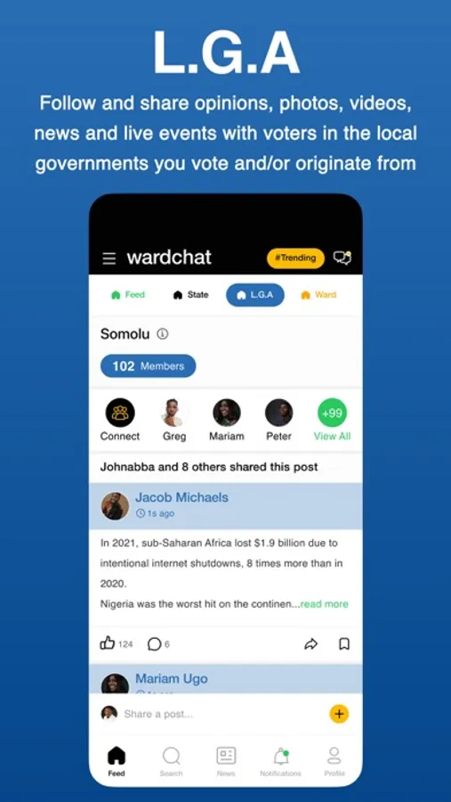 6. Ward Feeds - Follow and share opinions, photos, videos, news and live