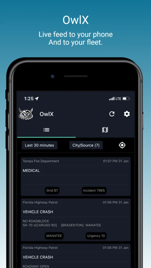 Always know what’s happening around you with OwlX. Save time on the road for you with the individual plan, or for your employees with the company plan. Real updates, real fast. Information from country-wide 911 calls automatically sent directly to you transcribed based on your real-time location.
