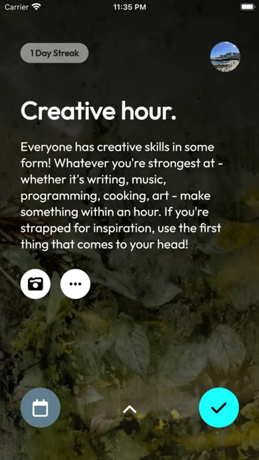 Ever been bored on a lazy Sunday? Feel like you're stuck in a rut, with each day blending into the next? Shuffle My Life is an app designed to take you out of your comfort zone, with activities for anyone at any time. Learn new things, clean your room in under 15 minutes, or explore a local area you're unfamiliar with. Either way, you're guaranteed to have no two days the same!