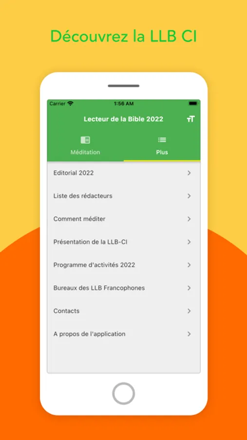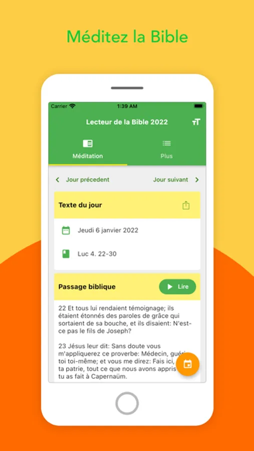 Lecteur de la Bible 2022 est un guide de méditation complet produit par la Ligue pour la Lecture de la Bible (LLB). Il vous permet de lire la Bible chaque jour. Le Lecteur de la Bible 2022 vous propose des commentaires bibliques plus élaborés et des textes bibliques édifiants.