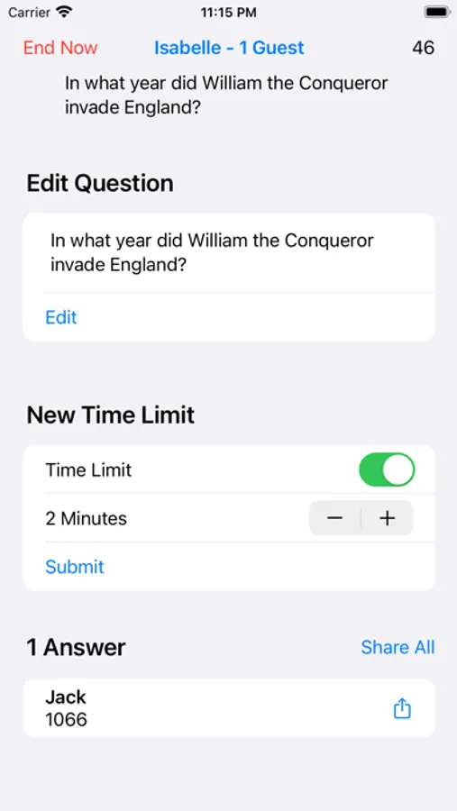 QuickFire allows teachers to ask students quick-fire questions on their iPads during class. Set time limits on questions and watch the countdown tick down to zero. Or, set an open-time question and stop the question when you are ready. See every student's submissions in real time and share the best answers with the rest of the class. See which students are 'multitasking' on their devices using QuickFire's "In my room" functionality, and block unwanted users from joining your virtual classroom.
