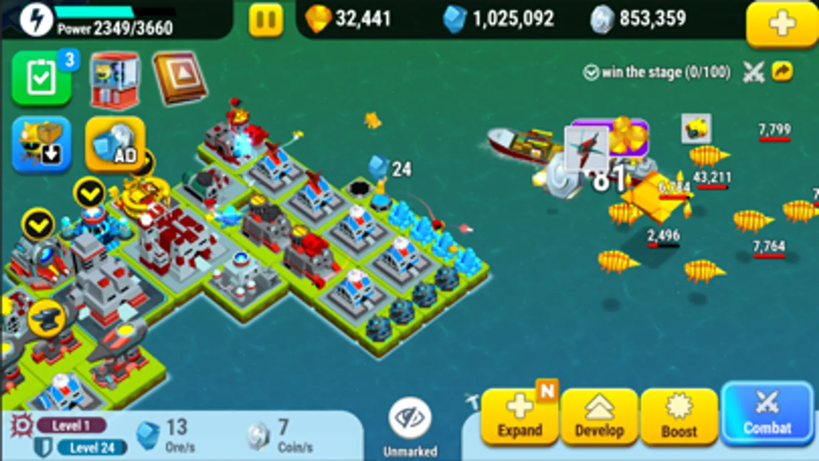 Develop your island with self-collected resources and get into battle with stronger drones!