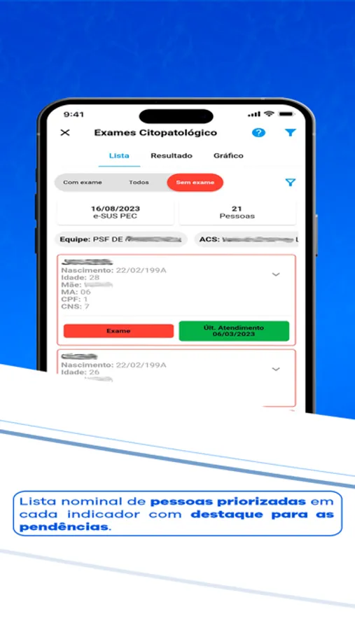 - Monitoramento dos cadastros individuais por Agente Comunitário de Saúde;