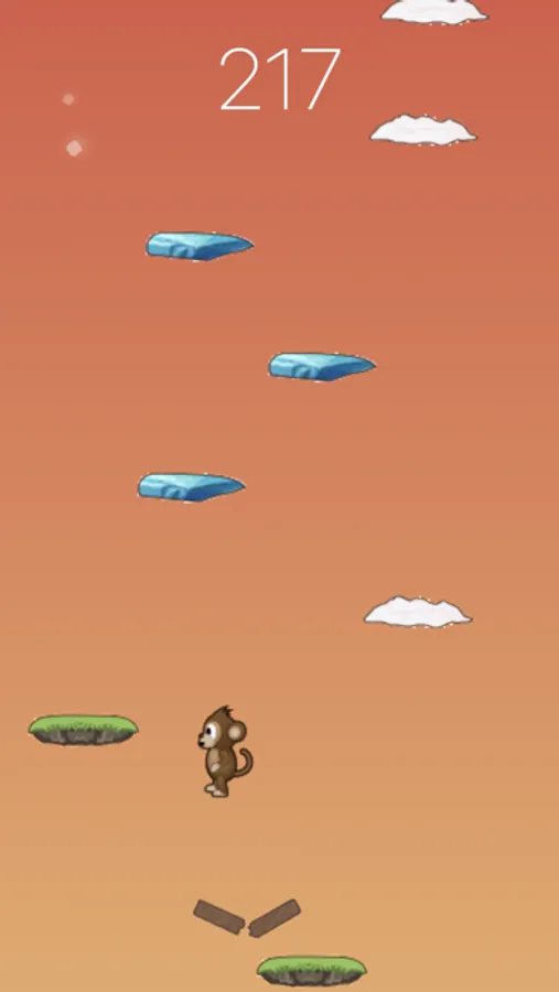Rotate your device or tap touch screen to control your jumping monkey and reach heights. Don't fall.