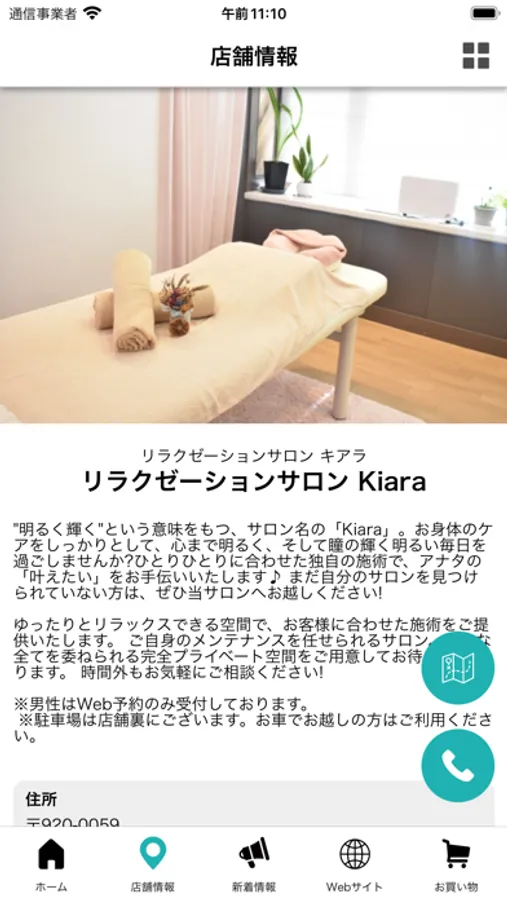 店舗のマップが表示され、地図アプリとも連携しているので、初めてのご来店の時も簡単に見つけることができます。