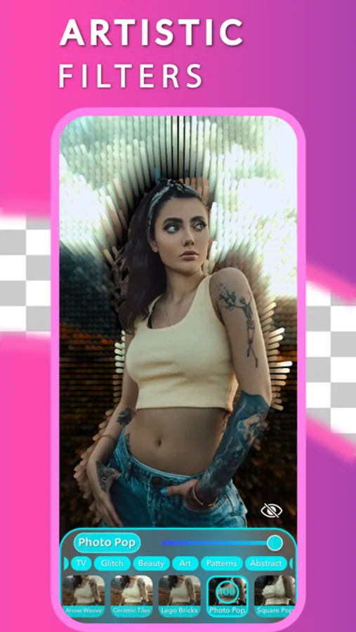 Discover the amazing hybrid camera editor: Magic Crop! Powered by AI, you can highlight any subject in a photo and apply amazing AI-enhanced effects!