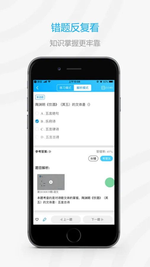 全部试题在线练习,即做即可看做题结果,更有错题集,随时查看复习易错点和薄弱点;支持入学测试、阶段测试、模考在线考试,智能批改形成个人学习报告,科学指导复习更高效。