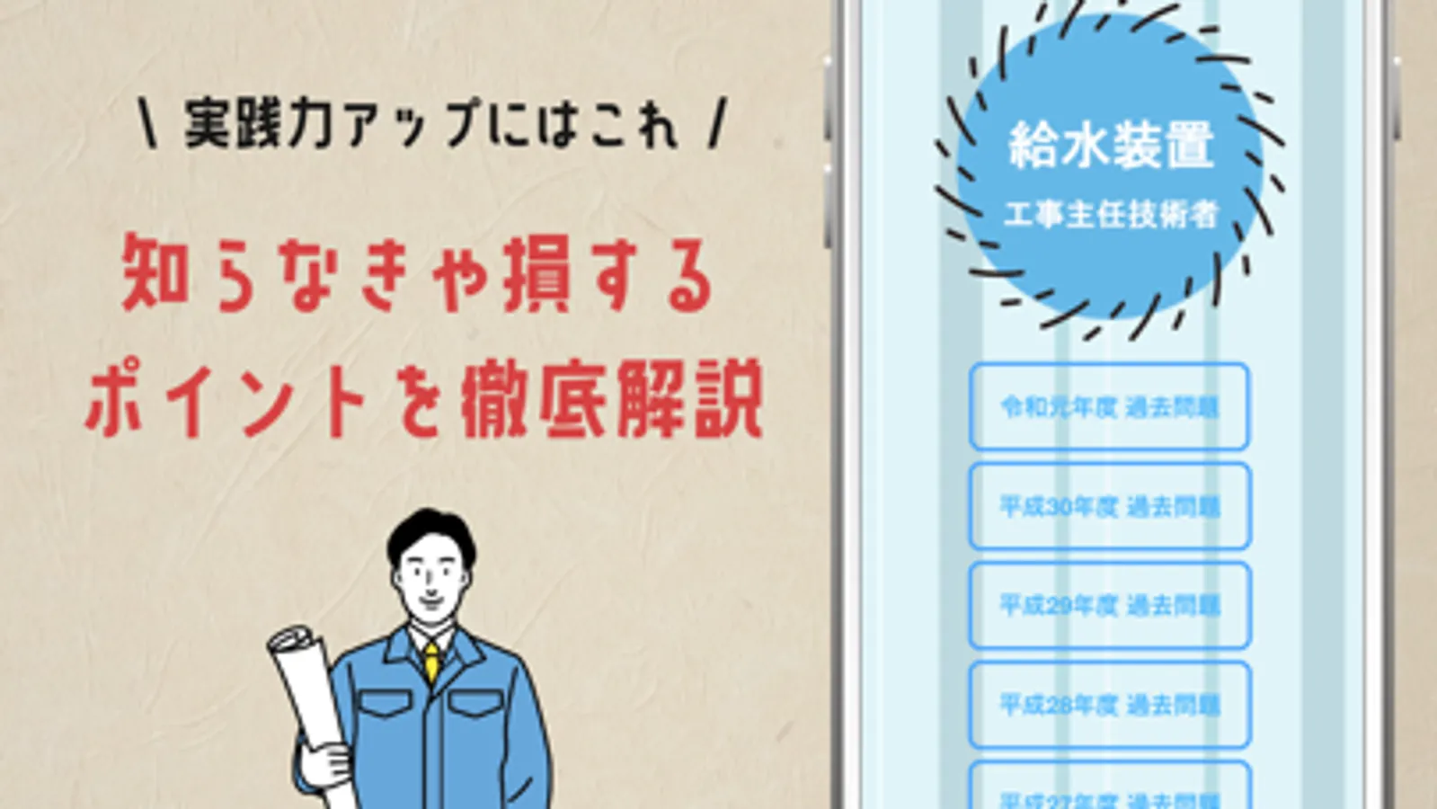 給水装置工事主任技術者試験の受験対策問題集アプリをリリース。