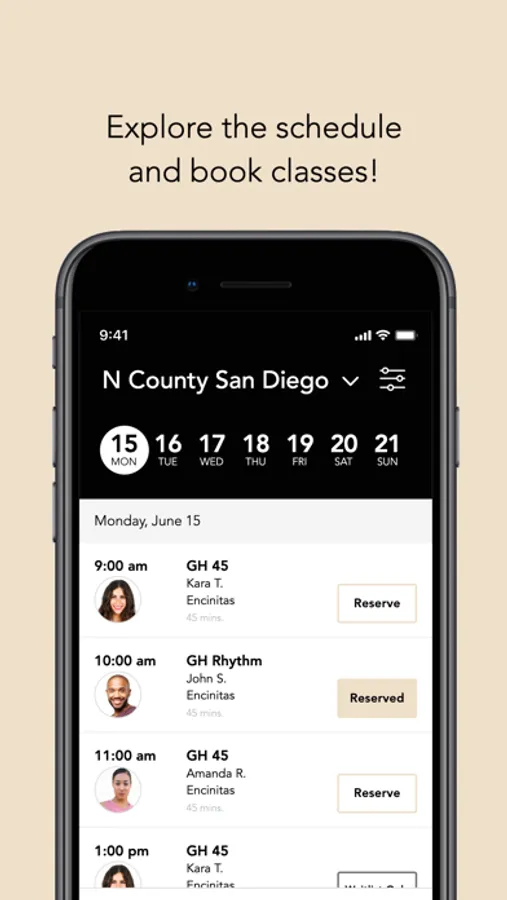 Purchase classes and plan your week of fitness.