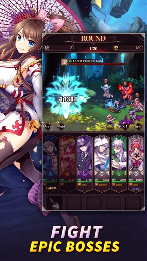 Carefully craft your squad to effectively counter enemy forces and know when’s the best moment to attack or defend! Pay close attention to elemental attributes and character types to counter bosses and keep your teams healthy and buffed in battle.