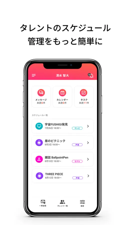 所属するタレントのスケジュール管理や請求書管理を行うアプリ