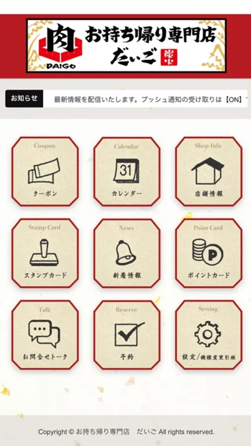 ・【お持ち帰り専門店 だいご】からの最新情報をプッシュ通知で受け取れます。