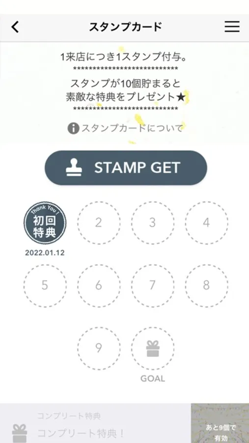・ご来店ごとにたまるスタンプカード。