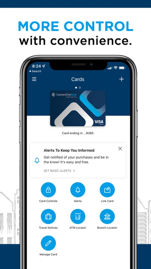 Manage your ConnectOne Bank debit cards with confidence - anytime, anywhere, all from your phone. MyCard Manager by ConnectOne Bank is free to download and makes it easy for you to stay in control of your cards on the go.