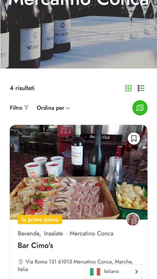 Siamo il mercato numero 1 di Mercatino Conca. Scopri bar, negozi, ristoranti, servizi e attività nella nostra zona. Ordina il tuo servizio e vieni a ritirare i tuoi prodotti presso la nostra sede e, naturalmente, se lo desideri, ordina i tuoi prodotti e scegli la consegna e noi verremo a consegnare il tuo ordine proprio davanti alla tua porta.