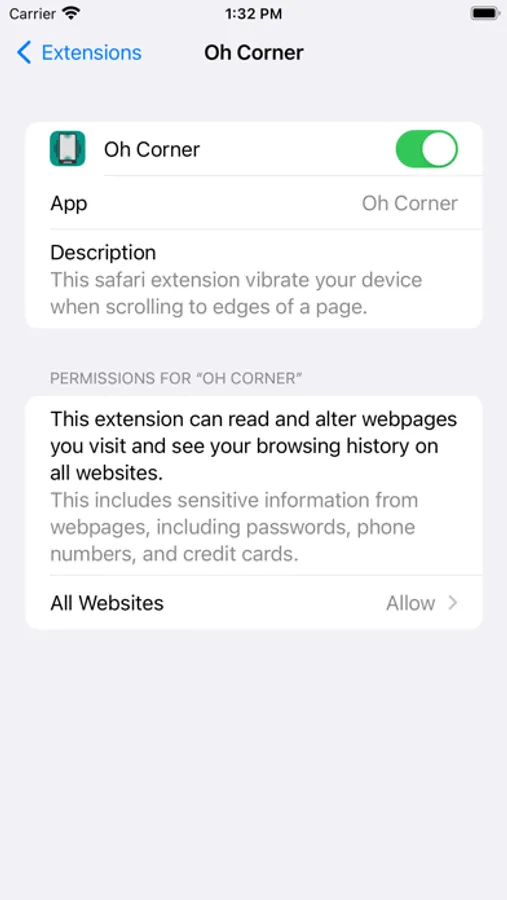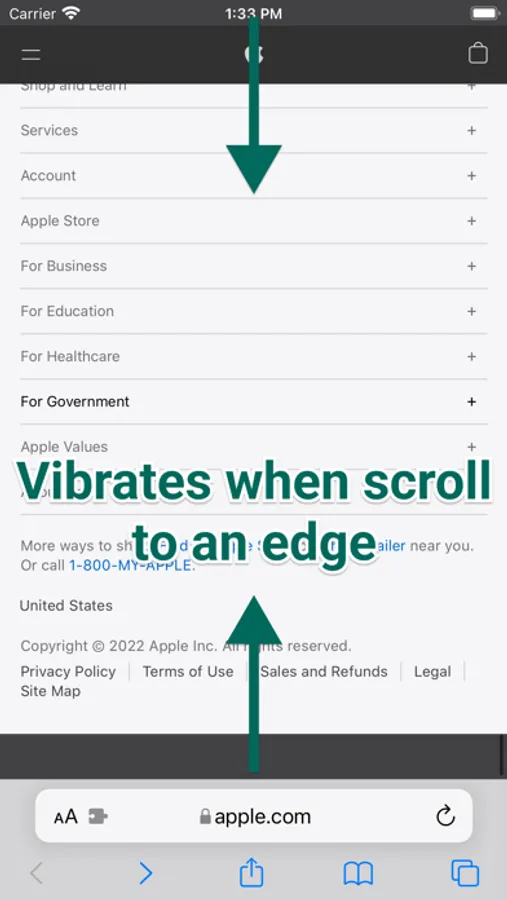 This is safari extension. This extension vibrate your device when scrolling to edges of a page.