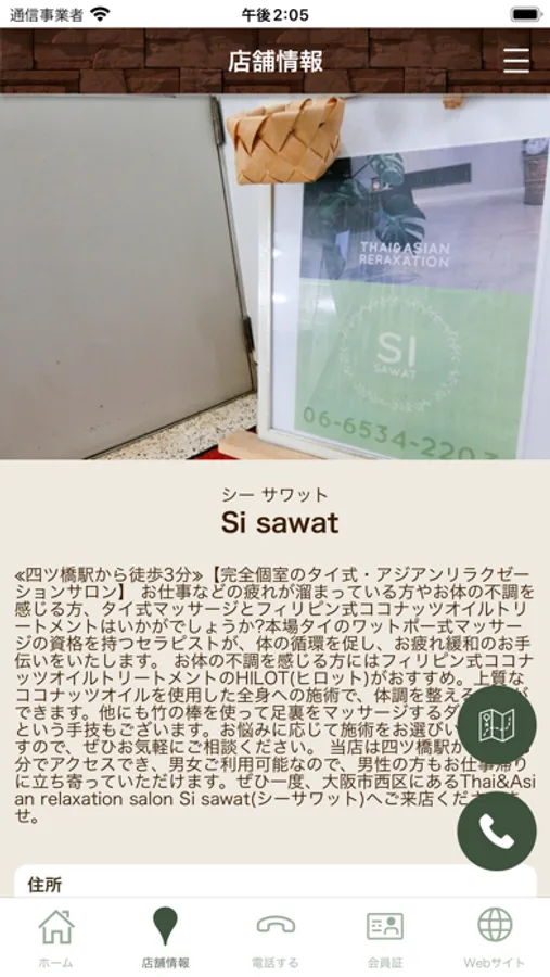 Thai&Asian relaxation salon Si sawatの公式アプリが登場。アプリを通して『Thai&Asian relaxation salon Si sawat』の新着情報やお得な情報をリアルタイムで受け取ることができます。また、いつでもお手元のスマートフォンから、メニューやご希望のお時間帯のチェック・ご予約などが可能です。アプリをインストールしていただくことにより『Thai&Asian relaxation salon Si sawat』を、より便利に身近にご利用していただけます。