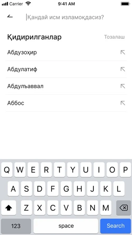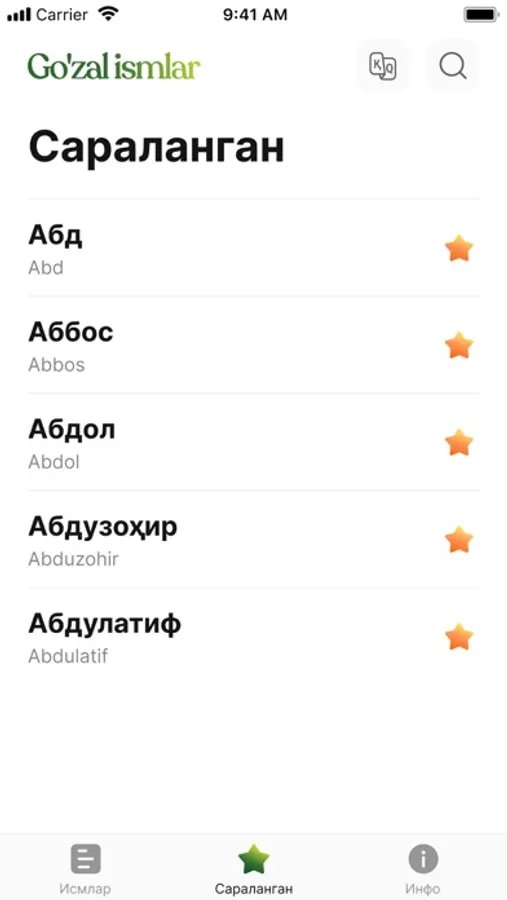 Boshqa ism ilovalaridan farqi - barcha ismlar chiroyli va ma'noli, musulmonlarga mos ismlardan tashkil topgan.
