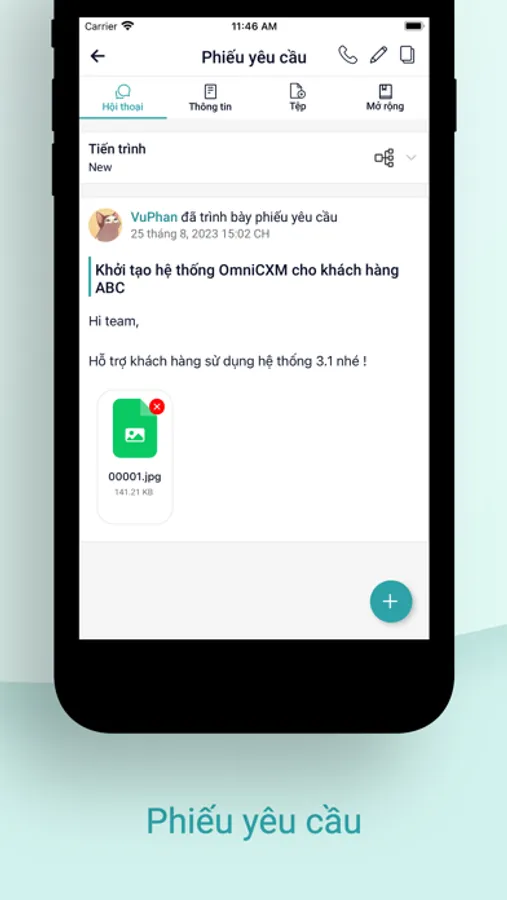 Ứng dụng cho phép ghi nhận các yêu cầu từ khách hàng dưới hình thức một phiếu yêu cầu. Từ đó, doanh nghiệp có thể theo dõi và xử lý các phiếu yêu cầu ấy ngay trên ứng dụng, nâng cao trải nghiệm khách hàng..