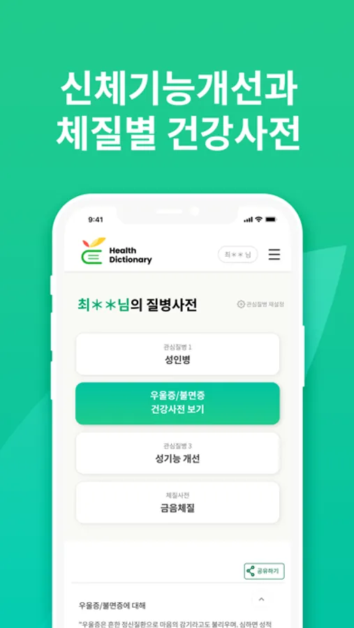 본인 신체의 질병질환에 대한 고민으로 어떤 건강(기능)식품을 먹어야 하는지 고민하고 계시죠. 또한 오장, 외모, 심성, 질병질환 등 체질별 데이터를 통해 일상생활에 도움을 드리고자 합니다. 건강한 일상을 유지하기 위한 역할을 헬스딕셔너리가 해보겠습니다.