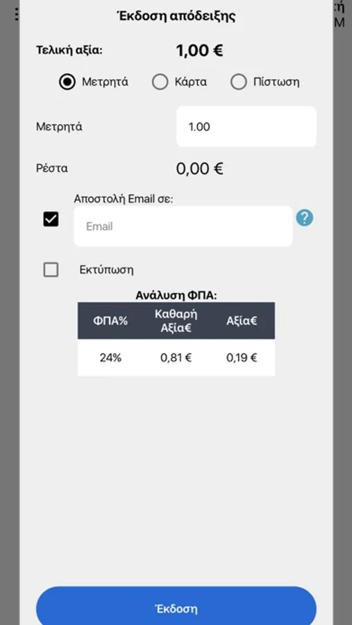 The first complete electronic cash register in Greece. With an app you issue legal retail receipts: