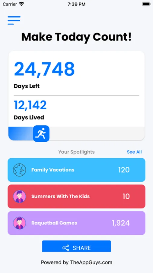 The Countdown App was created as a tool to help people stay present. Being aware of how much time you have left can be a powerful motivator!