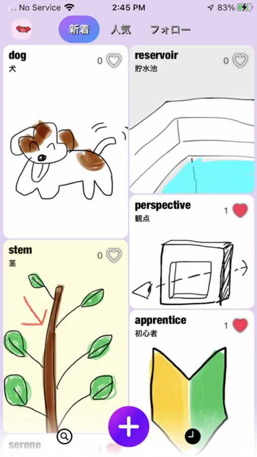 英単語にイラストを添えて投稿する。検索フォームで単語を検索すると印象的な絵が見れる。