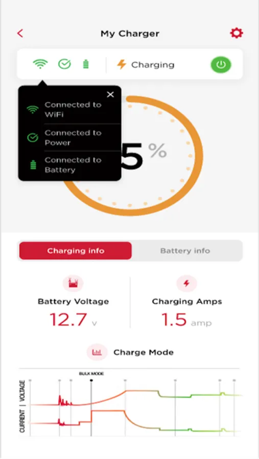 For traditional chargers and maintainers, the app monitors: